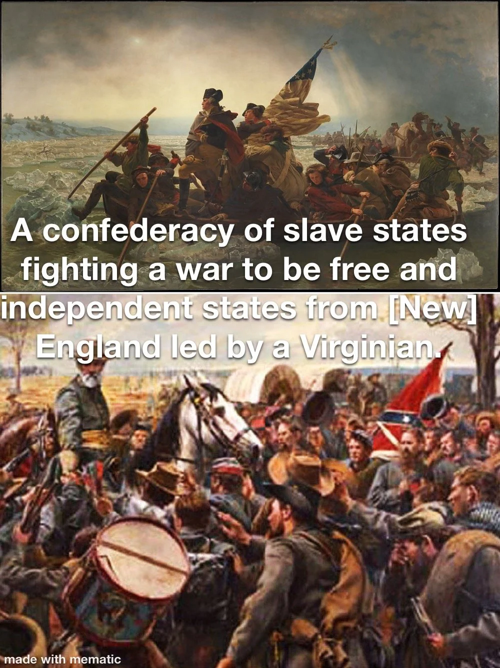 The cause for the South was independence from New England just like the cause of our ancestors was independence from England. Every state was a slave state in 1776.