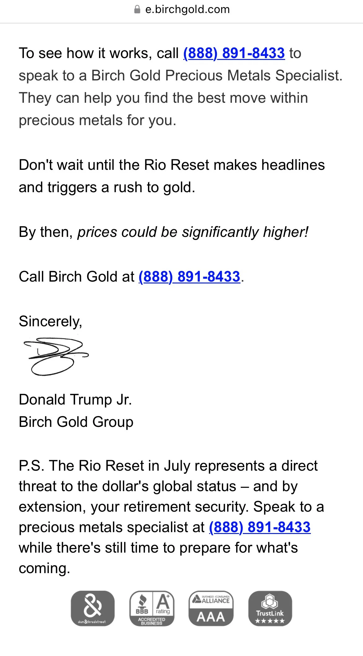 In an email to Birch Gold subscribers, Don Jr. wrote,